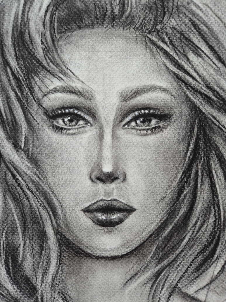 There is both fragility and defiance in her presence. The delicate rendering of her features contrasts the intensity of her eyes, as if she has seen both the beauty and the burden of being. Her hair, flowing yet untamed, becomes a metaphor for the wild, ungoverned thoughts that live beneath calm surfaces.