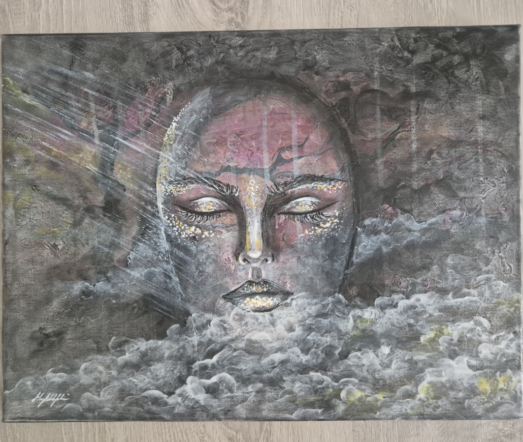 Silent Awakening is an original acrylic painting that invites the viewer into a moment of deep calm and spiritual renewal.