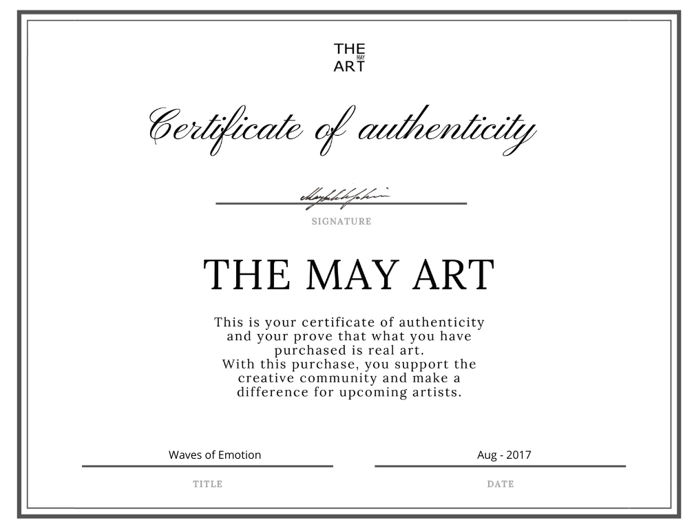 Signed on the front, stamped on the back, and including a Certificate of Authenticity, this painting arrives ready to hang — a timeless reminder that emotions, like waves, are part of life’s ever-changing beauty.